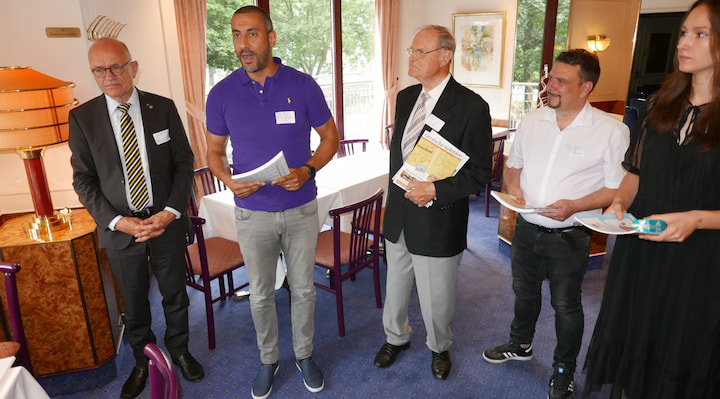 Auf dem Foto v.l.n.r.: Vorsitzender Jan Clauss stellt vier Neumitglieder der ArGe vor: Professor Faycal El Majdoub BPP, Dr. Hans-Joachim Drahn (Sohn des legendären Prüfers Drahn BPP), Henning Durst (Laribum, Hürth bei Köln) und die 16-jährige Barbara Ikić aus Samobor (Kroatien).
